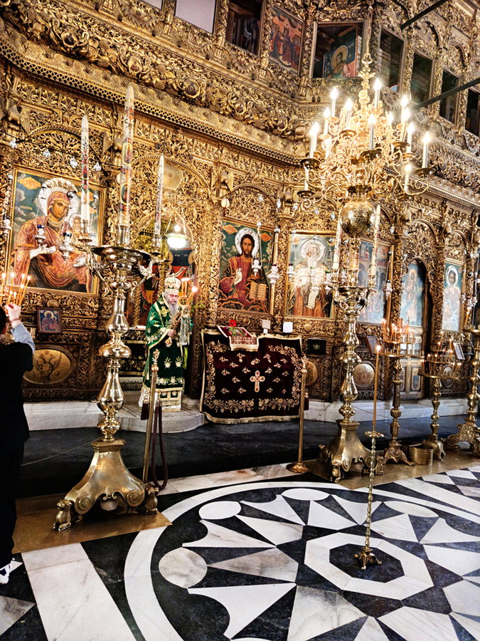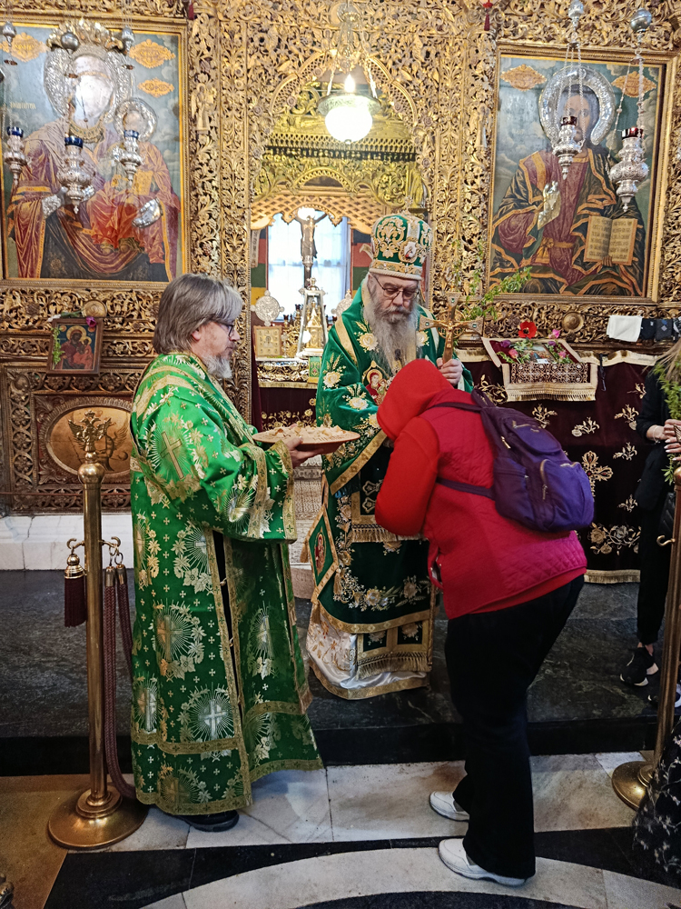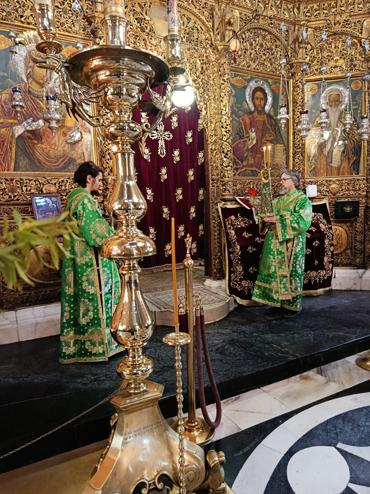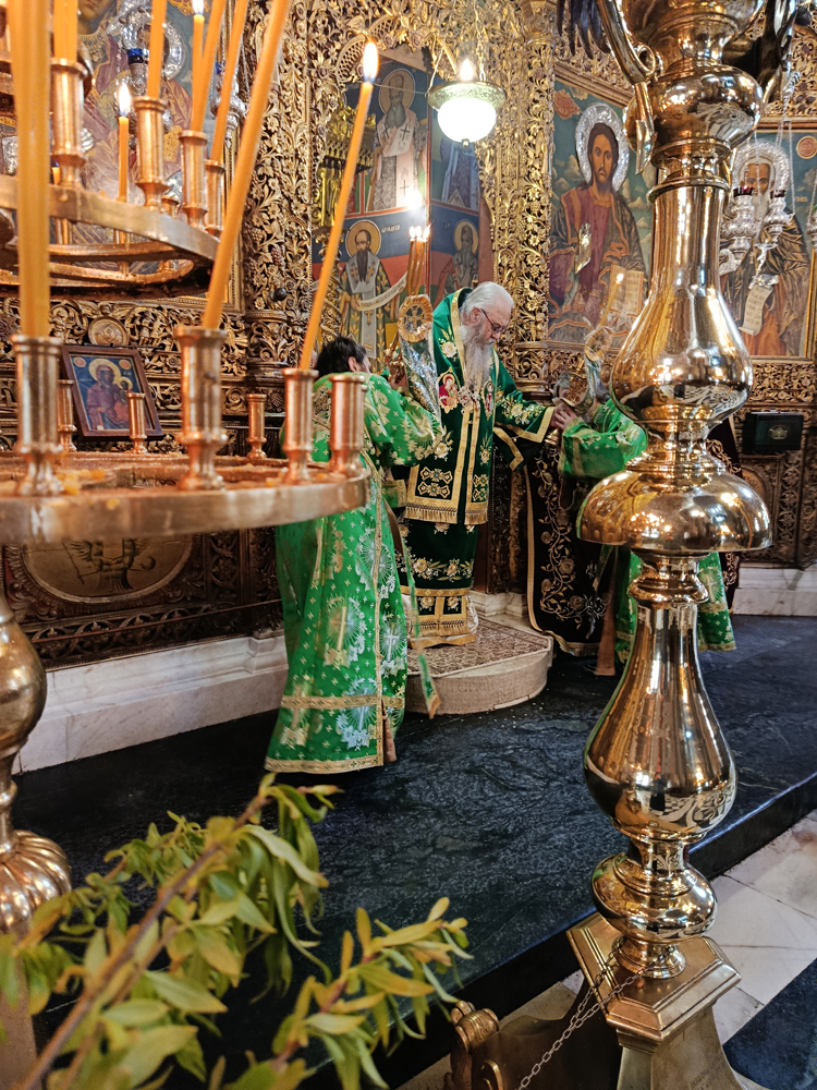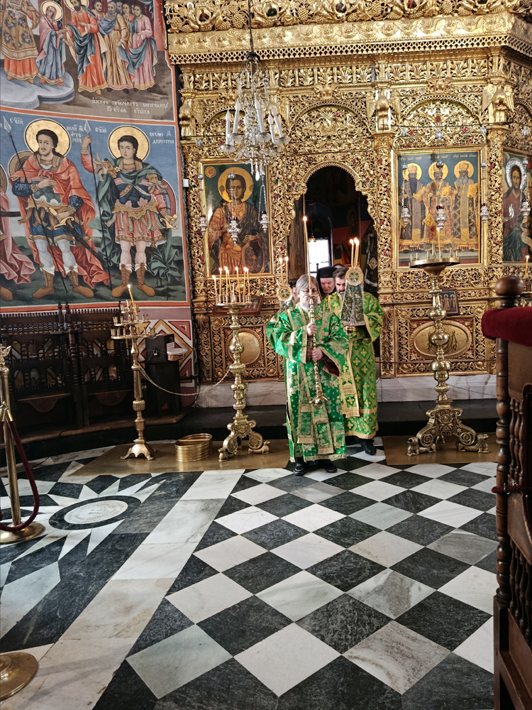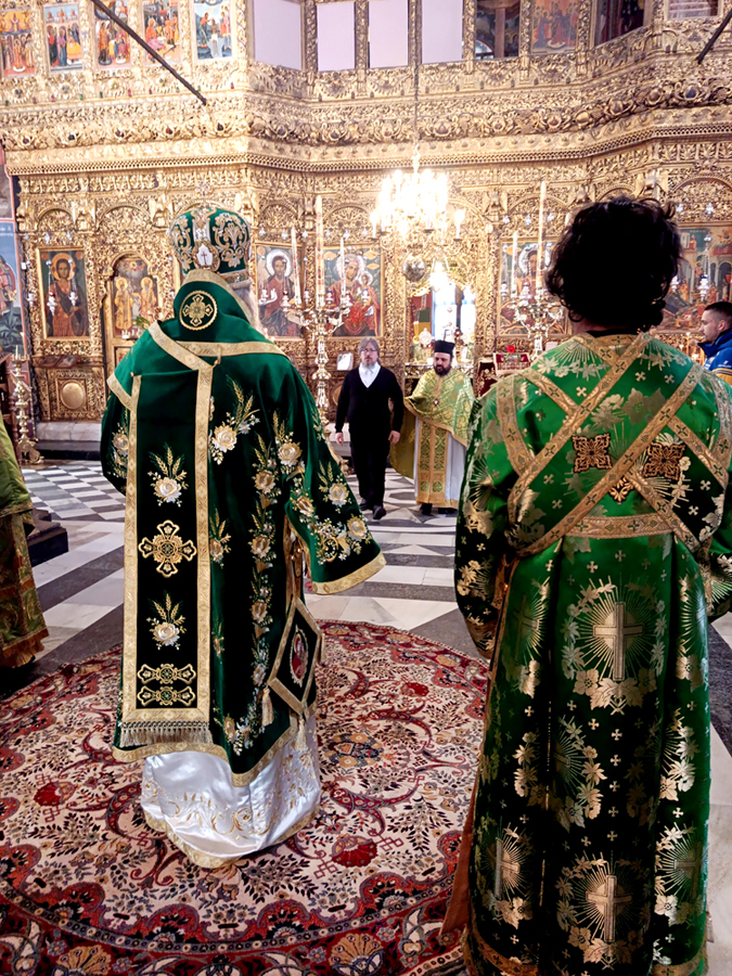 Днес, Неделя Вайя, тържествената богослужба в Рилската света обител бе предстоявана от игумена Адрианополския епископ Евлогий, в съслужение с братството на манастира.
